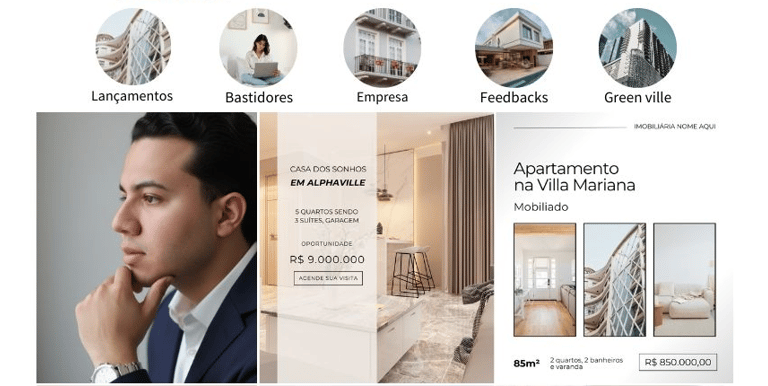 Não oferecemos soluções genéricas. Nosso foco é posicionamento, imagem profissional e estratégias específicas para o mercado imobiliário, com entregas práticas e direcionadas para vendas.